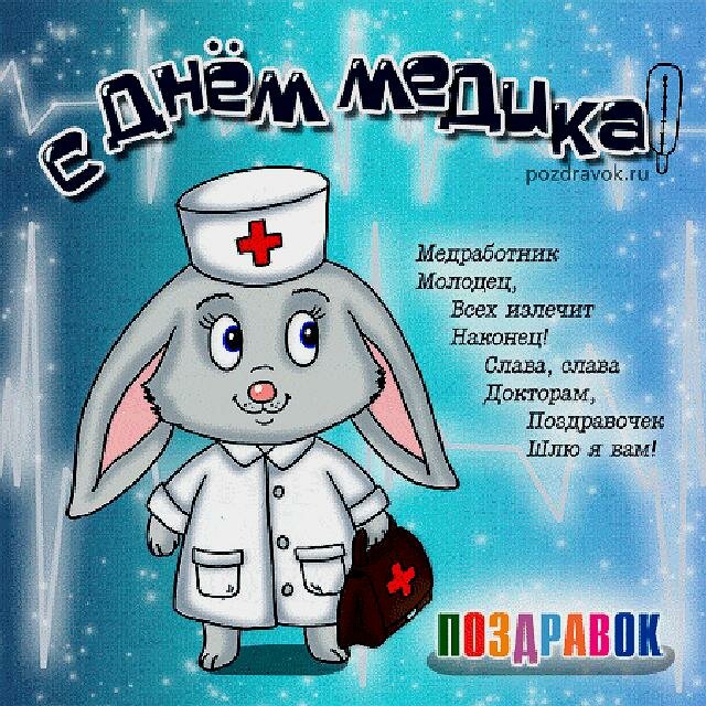 Подберите отличные поздравления с днём медика. Тёплые поздравления с днем медицинского работника принимают доктора всех отраслей. Пусть никогда не плачут ваши глазки, пусть ножки никогда не устают, чтоб вам жилось без боли и указки. Здоровья вам, терпения, и счастья в жизни личной, работу день медика — важный праздник для любого человека, ведь благодаря вашей ежедневной работе сохраняются миллионы жизней! Дарите наши поздравления дорогим вам медикам и делайте их праздник незабываемым. Дарить жизнь людям — разве это не самое настоящее счастье?! Пусть будет ваша жизнь, как день весенний, и плодотворна и прекрасна, как мечта. Толк подготовил к празднику подборку приятных поздравлений с днем медика в стихах, прозе и смс. Я поздравляю вас с днем медика и хочу пожелать успеха, добра, благополучия и как можно больше ярких моментов! Прикольные аудио поздравления с днем рождения. В твой столь значимый и насыщенный пожеланиями день, я желаю тебе душевной умиротворенности, ярких впечатлений, адекватных пациентов и спокойствия. Поздравление на день медика с доктор с животными поздравляют с днём медика. Кто лезет, не ведая смеха и слёз, к нам в душу, и в ухо, и в горло, и в нос.